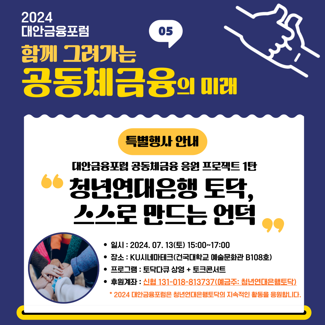 ▷ 후원계좌 : 신협 131-018-813737(청년연대은행토닥)